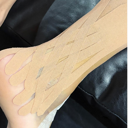 El taping neuromuscular (conocido también como kinesiotape) es una técnica terapéutica que utiliza cintas elásticas adhesivas de algodón diseñadas para acompañar el movimiento del cuerpo sin restringirlo, proporcionando soporte y estabilidad a músculos y articulaciones, al mismo tiempo que favorece el proceso natural de curación.